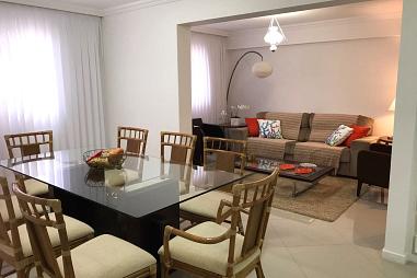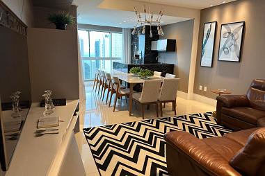Este lindo apartamento possui 03 suítes, 01 vaga de garagem privativa, lavabo, living integrado, sala de estar e jantar, churrasqueira para você aproveitar os melhores momentos com sua família e amigos, além de estar finamente mobiliado e equipado com excelentes eletrodomésticos. O Condomínio possui área de lazer completa.