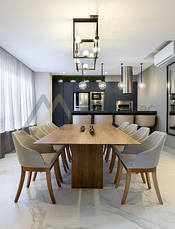 O apartamento possui 152 m² de área privativa possui 04 suítes, sala de estar e jantar, cozinha , lavabo, área de serviço, 03 vagas de garagem privativas, churrasqueira á carvão.