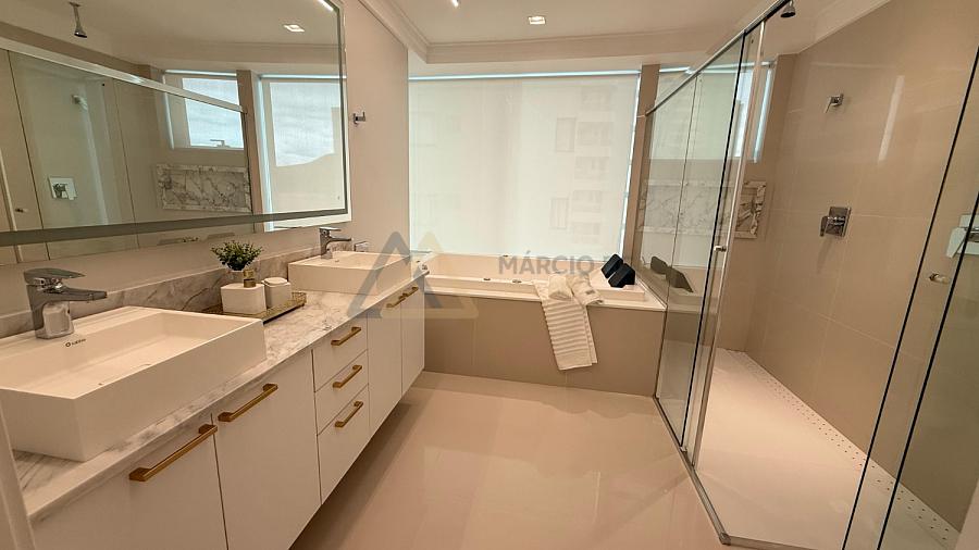 Apartamento de alto padrão com 306,98 m² privativos, composto por 04 suítes, sendo uma suíte master com banheira, lavabo, salas de estar e jantar integradas e cozinha funcional. Conta com móveis planejados, armários embutidos, ar-condicionado, acabamento em gesso, dependência de empregada e 05 vagas de garagem, oferecendo conforto, sofisticação e exclusividade em todos os ambientes.